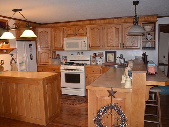 1 1/2 story home on nice level lot, 5 BR, 2 BA, custom Oak kitchen cabinets. Hardwood floors in kitchen and living room, many built ins, 24x30 attached garage (will hold 3 vehicles), 14x16 storage building, close to schools and park. This home was a ranch with an added garage 2BR, 1 BA built above garage. Measurements are approximate.
