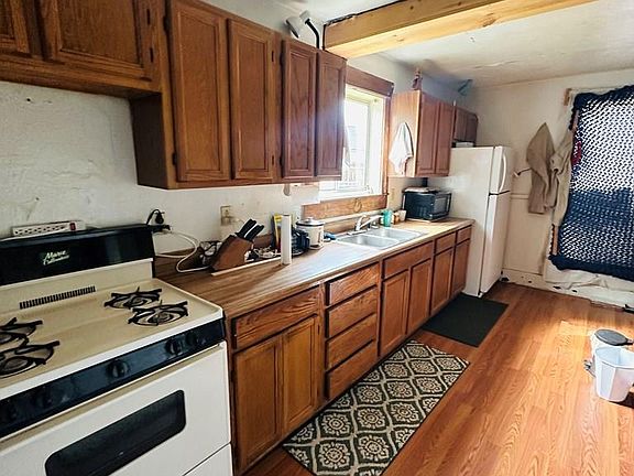 Calling all investors or fabulous flippers. This home is located near the college and across from Huggins Hall. Home has lots of potential for long term rental or student housing after extensive renovation. Originally built in 1885 as a mother-in-law quarters with the kitchen, living room and bathroom located downstairs and upstairs include 2 large bedrooms and an enclosed porch. Bedrooms have original hardwood floors, sloped ceilings and closets. You'll find ornate wood trim throughout the entire house and staircase. All utilities are in place and working. Full basement where furnace and water heater are located. Roof, windows and exterior will all need to be replaced.