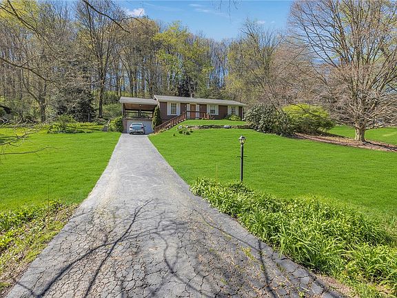 Private setting partly wooded 3.5 acres, creek in front yard. 3 bedroom ranch with full basement. Walk out kitchen to covered side porch. 1 car attached garage.