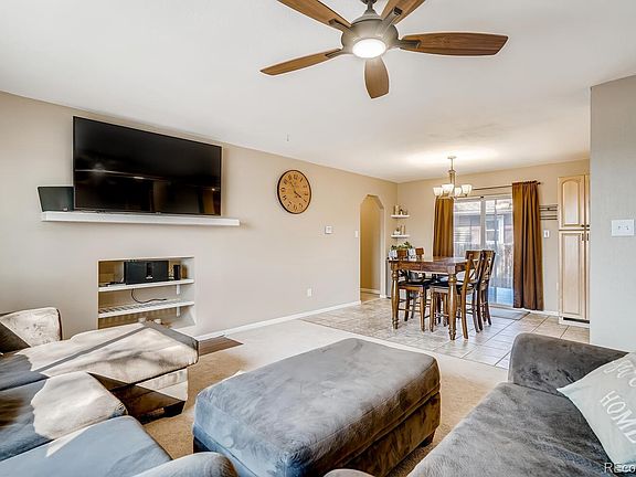 Full mountain views from this updated one level ranch home. A perfect view of Longs Peak from the living room window! Walk into the open living room, dining room and kitchen with great front to back light. The living room accommodates large furniture and has bonus built in shelving. The dining room opens to the back deck perfect for entertaining and indoor/outdoor dining. The kitchen has upgraded black appliances including gas range, tile flooring and good sized wall pantry. 3 nice sized bedrooms, one full bath and linen storage are just down the hallway to the right. The other side of the home has a bonus master suite with access to the side yard, large walk in closet and master bath with double head rain shower set up. This home is move in ready with a newer roof, new sliding glass door off master, vinyl windows, upgraded paint, newer water heater, nicely updated bathrooms and kitchen and all appliances that stay including washer dryer. Don't miss the RV parking, huge storage shed that stays and the fully fenced side and back yards.