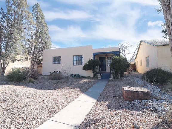 Rare and desireable 3 bedroom 2 bath ONE level home in coveted and beautiful Spruce Park. Delightful light filled living room and dining room are flooded with light. Coved ceilings and hardwood floors add to vintage ambiance while the fireplace will warm chilly evenings. The modern and efficient kitchen with hard surface counters and stainless appliances opens to living area - perfect for entertaining. The bedrooms are versatile and nicely proportioned offering backyard access. A separate guest studio with private bath is delightful retreat for company or perfect for the artist/author seeking seclusion and inspiration. Updated baths and large lot add to appeal. Best of all: walk to neighborhood park, UNM, hospitals or Nob Hill. A true gem in ideal location & fabulous neighborhood!