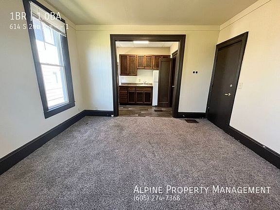 Call today to schedule a tour of this affordable ground floor 1 bedroom apartment near downtown Sioux Falls at 614 S. 2nd Ave #1! The living room is quite large with lots of windows for natural light. The bedroom has a walk-in closet and bathroom includes a tub shower! There is on-site laundry (coin operated), lots of off-street parking for tenants, and window a/c provided! - $65 application fee per adult - $500 security deposit - Tenants pay for electric - Landlord provides the gas, water, garbage, lawn/snow care - Pet friendly(2 max, breed restrictions, and fees apply) and non-smoking - Alpine Benefits included for $25/month extra (see website for full details) Professionally leased and managed by Alpine Property Management Garbage Gas Gas Water Garbage Lawn/Snow Care Included With Rent!! Ground Floor Apartment Large Pantry Lawn And Snow Care Multiple Entrances Non Smoking On Site Laundry Online Tenant Portal Pet Friendly Stove Water Window A/C Provided