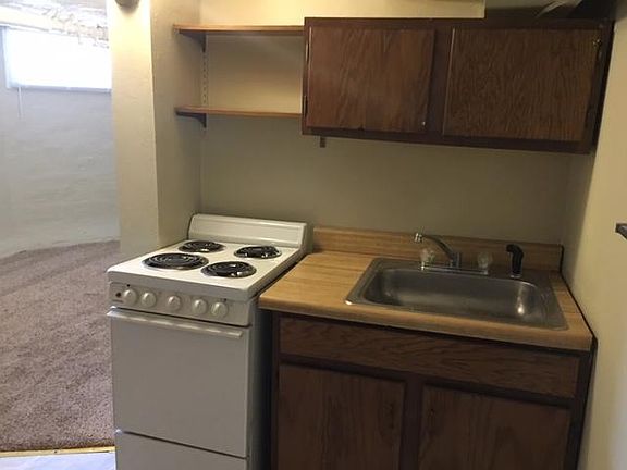 Downtown Springfield Studio Apartment - $495 a month with heat included, this studio apartment is as large as the 1 bedroom apartments in the building, plus features a private side entrance! Bathroom with shower/tub and a small kitchen with open floor plan for extra prep space. Rent is $495 a month with heat included, customer pays electric bill. Owner provides radiator heat, A/C units, water, and trash service. 1 year lease. Up to 2 cats okay with deposit, no dogs please. Non-Smoking.