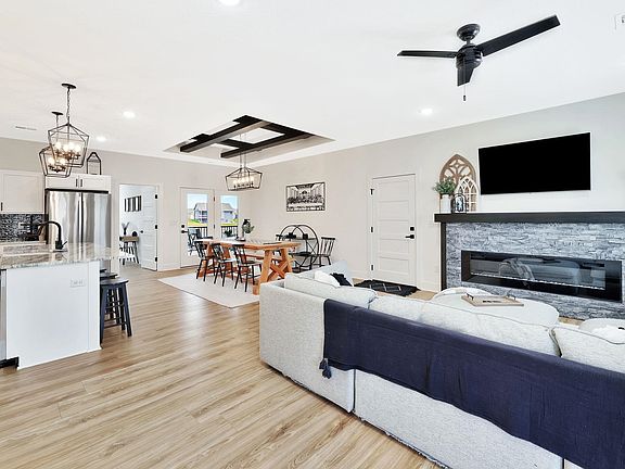 This stunning custom-built home, just two years old, is located in the highly sought-after Maize School District and is packed with exceptional features. The open-concept living and kitchen area boasts luxury vinyl flooring throughout, ample counter space, sleek stainless steel appliances, and a spacious walk-in pantry. The living room is centered around an elegant electric fireplace with a stylish tile surround, creating a warm and inviting atmosphere. The primary suite is a true retreat, offering a spacious bedroom, a spa-like bathroom with dual vanity sinks, a dedicated makeup area, and a walk-in tile shower. The oversized walk-in closet is not only impressive in size but also offers the convenience of an in-closet washer and dryer. The second bedroom is equally spacious and well-appointed. Step outside to enjoy the beautifully maintained exterior, featuring a scenic pond, an irrigation well with a sprinkler system, and a private sandy beach with a firepit—perfect for relaxing or entertaining. The screened-in lanai patio is designed for year-round enjoyment, complete with epoxy flooring and a built-in gas fireplace. The tandem insulated garage adds even more functionality, featuring a built-in safe room. This home truly offers a perfect blend of luxury, comfort, and practicality—don’t miss the chance to make it yours!