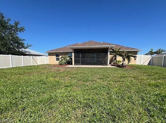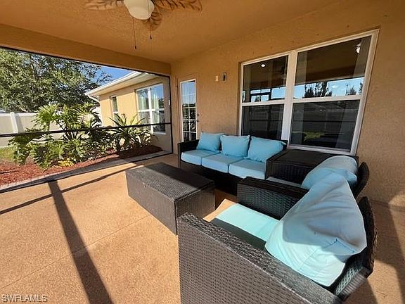 Come make this beautiful house, your next home!!!! This charming 2017 home priced to sell, offers the perfect blend of comfort, convenience, tranquility, and piece of mind, making it an ideal home for you and your family. SELLER CONCESSION TOWARDS CLOSING COSTS OR RATE BUY DOWN!!! With a NEW roof (2023), NEW hybrid hot water heater (2022), NEW floors 2023, NEW SOLAR PANELS (2023) (assumable) to help keep your electric bills low and a NEW HVAC 3.5 TONS (2024) and all ASSESSMENTS PAID makes this home better than new! It boasts 3 bedrooms, 2 baths and a den on a prime location close to shopping and grocery outlets, this residence ensures that every necessity is just a stone's throw away. Ever increasing entertainment, dining, and shopping opportunities with planned expansion to the west. Situated on a generous lot, this home welcomes you with open arms and a lifestyle of serenity and convenience. Step inside, and you'll immediately be captivated by the warm and inviting atmosphere that permeates every corner of this home. With ample natural light streaming through large windows, the interior feels bright, airy, and elegant. The spacious living area provides the perfect backdrop for entertaining guests or simply unwinding after a long day. As the day ends, retire to the comfort of the large westerly facing screened in lanai, where relaxation and rejuvenation await. Outside, the fenced backyard beckons with endless possibilities for outdoor enjoyment. From allowing children or pets to safely roam free or to customize and enjoy to your heart's content including ROOM FOR A future POOL, and complete with irrigation for endless landscaping ideas. Don't miss your chance to make this Cape Coral gem your own.