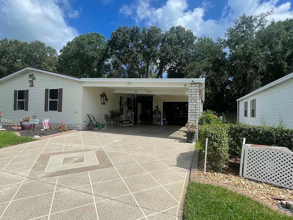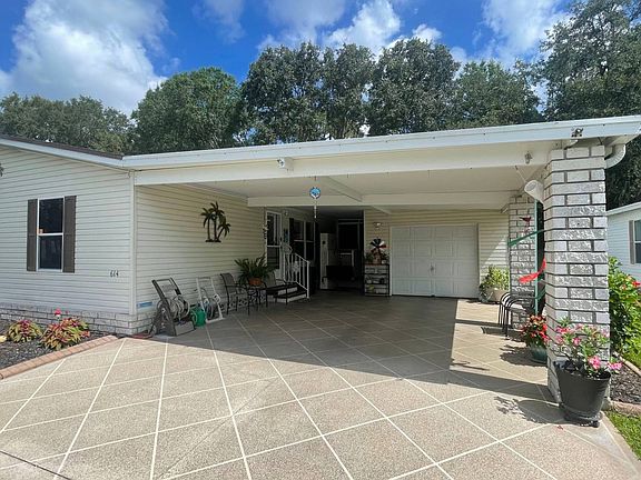 Come see this beautiful and very well maintained mobile home, don't miss this great opportunity, this is a hidden gem in the desired community of Hamptons! A beautifully made Windsor Model , made especially for you. Come and enjoy the 2 bedroom and 2 bathroom, laminated floors and great condition carpet flooring throughout this beautiful home. Walk the 1,310 SqFt, spacious open floor plan, clean and neat kitchen and a gorgeous furnished screen enclosed porch. The property is in great shape, move in ready, and fully furnished as per the furniture list attached. Don't miss the opportunity to grab this charming little gem on a large private and pristinely manicured lot complete with concrete edging around the home and flower beds, and located in the Hamptons Golf and Country Club Community! You will love this immaculately clean and well maintained 2 bed/ 2 bath Windsor Model (1310 s/f), which boasts an open floor plan and has many updates recently, including a new roof in 2018, added insulation to roof on lanai and a separate AC/Heater unit to lanai in 2019, making it a perfect spot to enjoy your coffee year round. Additional updates include both toilets replaced with higher ones, AC replacement in 2019, Brand new washer & dryer June 2022, gutters 2019, and a new refrigerator 2018. The main living area flooring has also been replaced with laminate and new carpet in bedrooms in 2019, a new dishwasher/garbage disposal and sink in 2022, as well as new screen skirting around the foundation and shutters just painted this year. As a bonus, the owner is leaving a platform wheelchair lift for accessibility. This is valued around $6000. This beauty also features a double driveway and oversized storage shed with overhead door for easy golf cart storage. If this all was not enough, this home comes furnished (list provided upon request), but furnishings include like new (2018) very comfy, leather, reclining furniture. You will think you moved into a resort with all amenities this community has to offer, including spa, whirlpool, tennis, billiards, fitness center, 18 hole golf course (lessons with golf pro on site if desired), with newly manicured greens and much, much more! Look no further, all this home is missing is YOU!