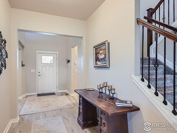 This home offers a 1-year rate buy down with the preferred lender . Welcome home to 614 Umbra Dr. This 5 bed/3 bath home has everything you have been looking for with updates galore. Immediately as you enter you will feel at home as the recently updated luxury vinyl plank flooring, white trim and neutral paints bring warmth to this home. The entry is open to the 2nd level and leads you to the flex space off to the right that is perfect for a formal dining, study, or hobby room. From there take a stroll through your butler's pantry into your gourmet kitchen. The granite counters, upgraded appliances and cabinets, double oven, large island, and large pantry complete your kitchen space. The kitchen flows with an open concept into your dining and living room ideal for entertaining guests. Primary suite sits privately on the main level away from other bedrooms, and is complete with large walk in closet, and 5 piece ensuite with upgraded tile, dual sinks, walk in shower, and soaking tub. A large laundry/mud room complete the main level. Upstairs guests or family members have their own large loft area/rec room with mountain views, an additional 4 bedrooms, and full bathroom! Full unfinished basement with rough in is a blank slate to do with as you wish. 2 car garage with bonus extended 6 ft. by 6 ft. area for tools, toys, ect. This house sits on a beautiful lot that backs to open space and has a fully fenced, maintenance free backyard that will save you time for more relaxing on those hot summer days! Note the low taxes for this metro district. This community is complete with a clubhouse, pool and fitness center. Conviently close to acclaimed downtown Loveland, Centerra shopping, Loveland Sports Park and I-25.