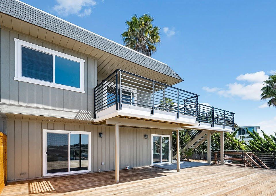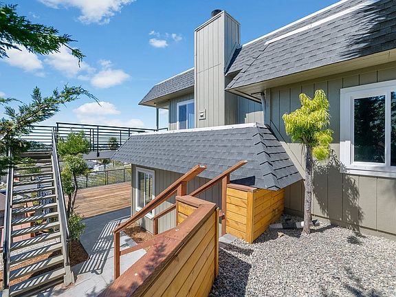 Great ocean views form this completely remodeled 2 bedroom 2.5 bath twin home. Brand new everything including new laminate flooring throughout, new doors, windows, appliances, cabinets, counters, paint and beautiful view deck. The living area is situated a few steps up from the entry, with an open floor plan featuring the living room with brick fireplace, Kitchen, dining area, powder room and deck with views out to the ocean. The lower level features the master bedroom with en-suite bath and guest room with access to the full guest bath. Both rooms have sliding glass door access to the new spacious deck with more great ocean views. Stairs lead to the upper deck and lower yard area for those with green thumbs. The 2 car attached garage features laundry hookups and plenty of room for storage. Located just minutes to shopping, restaurants, public transportation and the beach!
