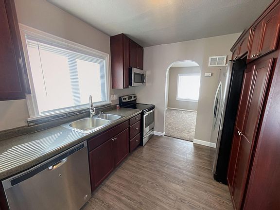 Totally updated ranch style home with 3 bedrooms on the main floor! The main floor of this home features a large living room, updated kitchen with cherry cabinets and stainless appliances, 3 bedrooms and a full bathroom with tile surround. The lower level of the home has a non-conforming bedroom, a large laundry room, utility room, very large living space and a 3/4 bath with tiled shower. The oversized garage can fit 2 vehicles in it. The exterior of the home has newer steel siding, updated windows, and a beautifully landscaped yard with a large patio for entertaining. This home is move-in ready! Call your favorite agent for a showing today!