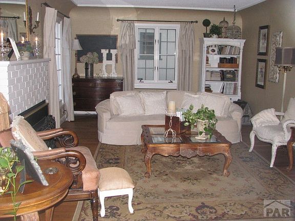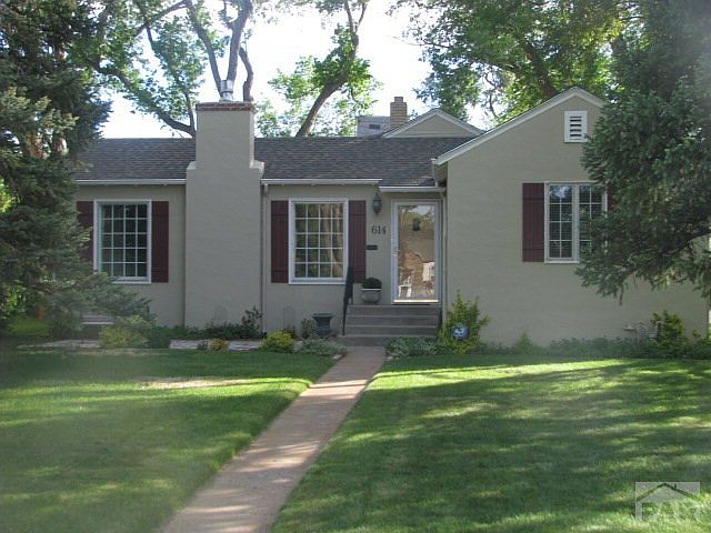 Well loved and taken care of home on one of the most desirable streets in Pueblo. As you drive down the wide street and pull up in front of 614 West Pitkin you will notice the large lot, lush lawn, front brick patio, impeccable stucco and shutters. The original 1940s front door welcomes you in to the bright, cheery living room with hardwood floors, cove ceiling and gas log fireplace. Dining room with hardwood floors and gorgeous chandelier. Off of the dining room, is the office/den/bedroom #3 with hardwood floors, closet and a door to the back yard. The kitchen has a large eating area, two charming half doors, double ovens, built in microwave, dishwasher, electric cooktop and hood and refrigerator. Master bedroom with hardwood floors and wonderful windows, bedroom #2 and adorable bathroom complete the main level. The carpeted recreation room downstairs is a cozy place to gather and watch movies, sit and relax or play games. Large laundry room has original steel sink, storage and a toilet. A very large storage room completes the basement level. The back yard has a covered patio, storage shed, detached 2 car garage, privacy fence and beautiful landscaping. The roof on this home is 3 years old, the heating system is hot water radiator heat which is very consistent and CLEAN. Swamp cooler and shade trees keep the entire home cool and comfortable during the warm summer days. Storm windows, security system, sprinkler system, never painted original door knobs and hardwood floors.