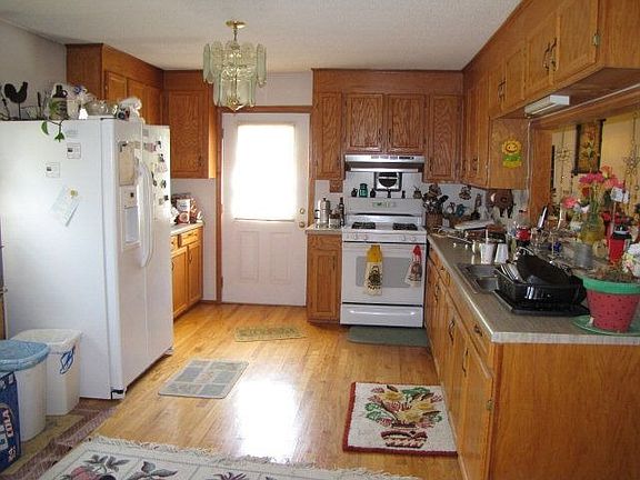 Great starter home; hardwood floor in kitchen and eat-in dinning area; oak cabinets; carpet; walk-in closets; full baths with sit-down tub in master; ceiling fans in every room; storage shed/workshop; front porch; deck; and wheel-chair ramp could be used or removed; fireplce with gas logs; wall-unit heater; separate trailer hook-up and septic tank on lot; unfinished exterior.