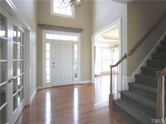 Exceptional value in Cary's sought-after Preston Village. Easy commute to RTP, RDU, Raleigh. Stately brick front. Separate entrance from side porch. Five bedrooms plus bonus and office. Huge gourmet kitchen with gas cooktop, granite countertops and stainless steel appliances. Hardwood and tile floors on main. Beautiful master bedroom with trey ceiling and California-style closet. ***Large lot on corner of loop street and cul-de-sac. Custom landscaping. Swim community. ***Covered side porch. Lush landscaping. Side-entry garage. Large side yard. ***Gracious foyer. Soaring ceiling. Gleaming hardwood floor. Staircase has convenient central… location. French doors lead to office. ***Gorgeous formal dining room. Trey ceiling. Raised panel wainscot and chair rail. Hardwood floor. Triple window with transom above. Oil-rubbed bronze light fixture. ***Convenient home office. Built-in bookshelves, closet, crown molding and raised-panel wainscot. Custom inlaid wood floor. ***Family room has wall of windows. Oversized gas log fireplace with marble surround. Custom built-in shelving and cabinets. Contemporary ceiling fan with light. Crown molding. Extra height ceiling. ***Kitchen features granite countertops, stainless steel undermount sink and brushed nickel faucet. Pendant lighting over bar. Undercabinet lighting shows off the custom tile backsplash. Lots of cabinet space! Five burner gourmet gas cooktop. Built-in microwave. Wall oven. Antique white cabinets with hand rubbed glazed finish and crown molding with rope detail. Stainless steel appliances. Bar seating. ***Spacious breakfast area with bay window and door to deck. Oil-rubbed bronze fixture. Hardwood floor. Crown molding. Contemporary paint colors. ***First floor room has lots of possibilities: second home office, fifth bedroom, in-law suite, exercise or game room. Ceramic tile flooring with beautiful inlaid tiles. Door to the side porch and access to full bath. Ceiling fan. Tall windows. ***Fantastic bonus room. Berber carpet. Double window. Ceiling fan with light. Open to upstairs hallway/catwalk over foyer. ***Master bedroom has tall trey ceiling and bay window. Berber carpet with inset. Ceiling fan with light. California-style closet. ***Luxurious master bath. Whirlpool tub and separate shower. Separate toilet enclosure. Vaulted ceiling with skylights. Two vanities. Tile floor. ***Spacious secondary bedrooms have ceiling fans and lots of windows. ***Deck is a great space for outdoor entertaining. Mature landscaping.