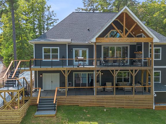 Welcome to this lakefront, newly-built custom home in the lovely community of Four Pointes North. Built in 2022, this beautifully modern open floorplan home features a spacious kitchen and great room with a soaring vaulted ceiling in the extending to the covered outdoor deck. Step outside onto the deck and enjoy stained tongue and groove ceilings and never-gets-old Lake Keowee views. Inside, three main-level bedrooms and two full bathrooms make single-level living possible if desired. Additional expansive rooms downstairs in the walkout lower level include a family room/private gym space, an additional bedroom, an office, and 1.5 bathrooms. But wait, there’s more! Also in the lower level you will find a water toy storage area, covered deck seating, and of course a walk-out to the lake. As you explore the lakeside of the house, you are greeted by a deep-water dock, amazing swimming area, and a beautifully tranquil outdoor space. The backyard is fenced, and a gravel golf cart path leads to the full-sized covered dock which features electricity, water, and fiber-optic cable. Enjoy gorgeous Lake Keowee views in multiple directions on this prime point lot. The custom 26’ X 30’ dock with upgraded features include a water-level seating area and comfort slant ladder. The Four Pointes North community is a premier, gated community situated nicely in a quieter, lower traffic part of Lake Keowee. Enjoy the feel of “getting away from it all” with the convenience of all Oconee County has to offer. Area attractions include waterfalls, hiking, lakes, rivers, parks, shopping, dining, medical care, music venues, breweries, performing arts center, and fantastic community events.