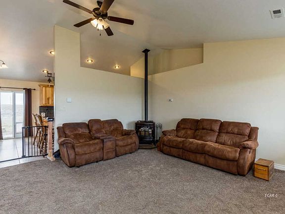 Well maintained Elko model beck built home. This home sits on 2 acres and is 1669-SF. Throughout the home you'll see vaulted ceilings, ceilings fans in all the main living areas/bedrooms and heat/cold resistant window coverings for efficeincy. The living room is great size and has a beautiful pellet stove. The dining room area is a great size with a slider out to the back patio and fully fenced back yard. There is one of the four bedrooms right off the dining room which is perfect for guests. The kitchen has plenty of counter space, rustic hickory soft close cabinets, updated faucet, breakfast bar and an oversized pantry. The master bedroom has beautiful crown molding and a large walk-in closet. The master bathroom has double sinks and an oversized tub which has a tile surround with shelving in the shower. All the spare bedrooms have builtins in the closets and have plenty of room. The laundry room has shelving above the washer/dryer and it has a huge storage closet. The 3 car garage is insulated and offers 682-sf to park your cars. **Seller to provide $6,000 toward Buyers closing costs**