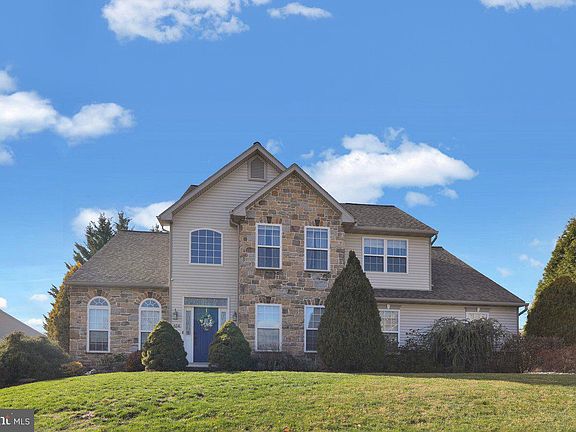 Welcome home to 614 Wolfe Lane, located in the highly desirable Governor Mifflin School District in the Northridge community. This beautiful property offers four bedrooms and three and a half bathrooms. The exterior boasts excellent curb appeal with its stone façade, well kept landscaping, side entry two car garage, and welcoming walkway. Step inside and you’ll be greeted by a bright foyer with tall ceilings and abundant natural light. To the right is a private office with french doors. The living room features stunning hardwood flooring and a large, unique window that continues to fill the space with natural light. A formal dining room with elegant crown molding provides the perfect setting for gatherings. The kitchen is bright and inviting, showcasing white cabinets, granite countertops, and a beautiful island with seating. A built in mini fridge offers extra drink storage, and there is an additional dining area with sliding glass doors leading to the covered patio. The family room features vaulted ceilings and a cozy fireplace. A half bath and laundry room complete the main floor. Upstairs, the spacious primary bedroom includes a private ensuite bathroom with a jetted soaking tub, stall shower, and a beautiful double vanity. Three additional bedrooms on this level are generously sized, each with carpet, and they share a full hall bathroom. The finished basement adds even more living space, complete with a stylish wet bar, a full bathroom, and an additional room that could serve as a playroom, gym, or office. Outside, enjoy a charming patio with a fireplace and a perfect spot for mounting a TV. This corner lot is also located right behind the starting point of the Mohnton Halloween Parade—a fun bonus for the new owners! Electric car charging outlet in the garage. Conveniently located near local shopping, dining, Nolde Forrest, and major highways. Schedule your showing today!