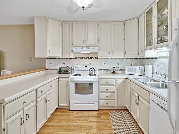 Condo in Woodbridge Association with 2 Bedrooms, 1.5 Bathrooms, 1 Stall Attached Garage. White Kitchen with tile backsplash, Main Floor Laundry -No basement, Gas Forced Air Heat with Central Air, Pella Windows and Patio Door. All Electric.