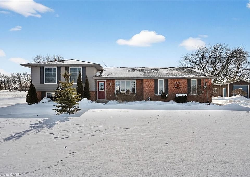 Welcome to the full country package just minutes from all of Smithville’s amenities. This immaculate and spacious 3+1 bedroom, four-level sidesplit sits on a picturesque 1-acre lot and offers over 2,000 sq ft of finished living space with natural gas heating. Hobbyists will love the bonus 16’ x 22’ detached shop with hydro, concrete floors, and an automatic garage door. Step inside to an inviting layout that just feels like home. The bright eat-in kitchen offers a breakfast bar, tiled backsplash, pot lights, luxury vinyl flooring, stainless steel appliances, and a gas stove, flowing seamlessly into the living room with hardwood floors, pot lights, and a charming bay window. Enjoy year-round relaxation in the fully enclosed 17’ x 14’ cedar-lined porch with pot lights and dual gas hookups, or take advantage of the 16’ x 30’ rear deck, large yard, and above-ground pool (2020). The upper level features three generous bedrooms and a 5-piece bath with double vanity, while the lower level includes a spacious rec room with a gas fireplace and a fourth bedroom. An unfinished basement with walk-up garage access offers excellent potential for a future in-law suite. Additional updates include a professionally renovated bathroom (2025), a new septic bed (2022), furnace (2021), owned hot water heater (2020), central air conditioning (2018), and more. This truly move-in-ready home in an incredible rural setting offers nothing left to do but enjoy.