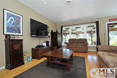 Lovely La Mesa home with modern upgrades; kitchen and bath remodeled, recessed lighting, granite tile counter, hardwood floors thru out, custom lighting in kitchen cabinets, ceiling fan in dining room, updated central air and heat, glass atrium door leading to backyard. All nestled on the rim of a canyon. Offering privacy and beautiful scenic view. RV parking possible. Covered patio in back with adjacent uncovered patio slab currently used as pla y area.