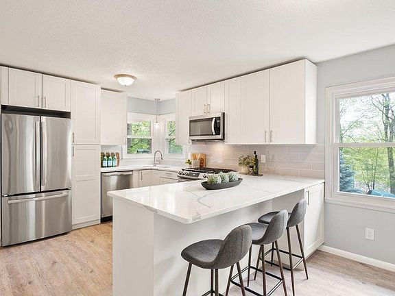 Gorgeous rambler perched in The Highlands with seasonal lakeviews of Lake Minnetonka: nestled in the privacy of a large mature yard with extensive landscaping. Updated throughout with new flooring, quartz, kitchen appliances, mechanicals, paint, baths, and two gorgeous fireplaces. Oversized double garage with plenty of parking, and incredible outdoor spaces make this home perfect for all! Great floorplan offering large bedrooms & private baths - flowing spaces- perfect for entertaining! Owner offers 1 yr Warranty. with right offer.
