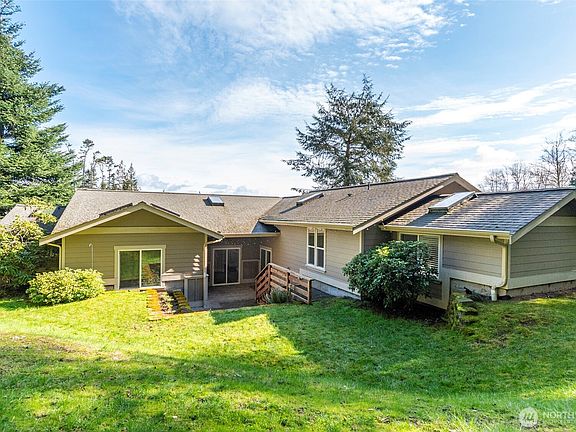 Embrace the beauty of the Pacific Northwest in the coastal community of Skyline. Nestled against serene forest lands, this inviting home offers main-level living with high ceilings, skylights, vinyl plank flooring, and a cozy gas fireplace. The spacious primary suite features a custom walk-in closet, make-up nook, dual-sink vanity, and jetted tub. Step onto the private covered patio and immerse yourself in the sights and sounds of nature, with towering evergreens and wildlife just beyond your backyard. Explore Washington Park’s scenic trails, kayak along rugged shorelines, or watch boats drift through the marina. A nearby park, pickle-ball court, beaches, and endless outdoor adventures, this is your gateway to the best of coastal living.