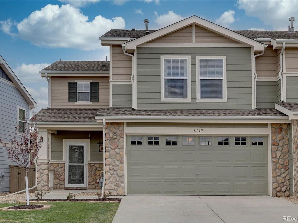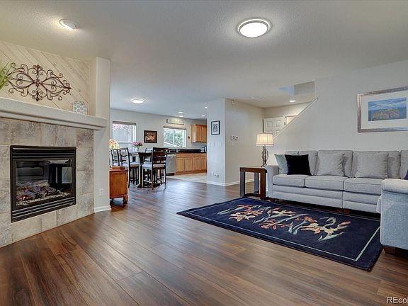 Welcome home to Castlewood Ranch! This well maintained townhome has 3 bedrooms, 3 bathrooms and a 2-car garage. The main level has a spacious open floor plan with a large living room, kitchen, dining area and powder bath. The large living room has a gas fireplace, LVP flooring and is open to the dining area, which has access to the backyard and patio through the sliding glass doors. In the kitchen you will find brand new stainless steel appliances, granite counter and tile flooring. On the upper level are all the bedrooms and laundry room which is conveniently located in the hallway with washer and dryer that are included. The primary bedroom is huge with a large walk-in closet and ensuite 3/4 bathroom with double sinks, quarts counter and a large shower. There are two additional bedrooms and a shared full bathroom. The backyard is low maintenance and well taken care of with newly painted fence and deck, artificial turf, flowerbed and an ornamental tree for more privacy. This townhome is located a few minutes from downtown Castle Rock, I-25, Highway 83 and close to shopping, trails, parks and near Gateway Mesa Open Space and Castlewood Canyon State Park. More photos to come by May 11th.