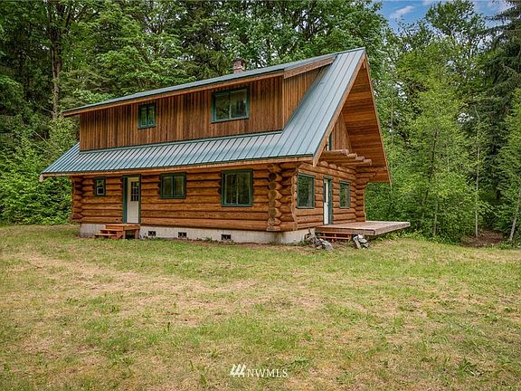 This 12.9 acre property has it ALL! Log home built in 1995 by True Log Homes and never occupied is ready to make your own! Nestled in a spacious clearing on the front of the first lot, surrounded by lush green space. Take a peaceful stroll through dense forest of towering trees to the propertys RIVER FRONT located north on the fork of the Nooksack river. Septic and well installed, power on lot but not yet hooked up to the home. Log home is located out of the flood zone and is framed on the inside. Incredible opportunity with ENDLESS possibilities!