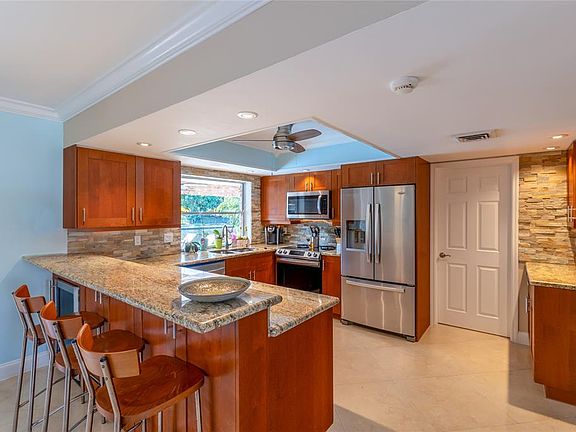 Situated along the expansive waterway on the community's largest canal. This charming 3 bedroom and 2.5 bathroom residence is a boating enthusiasts haven. Located on 110 feet of prime canal frontage, private dock and large swimming pool this home offers a blend of amenities. Nestled within a serene cul-de-sac in the highly desirable neighborhood of Plantation Isles/ Waterway Estates. The property boasts an upgraded kitchen, spacious master bedroom, open floor plan and fireplace. Experience this welcoming, stable, friendly neighborhood and start your day with soothing serenity of waterfront living.