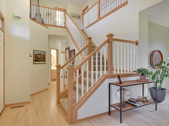 Updated two story with easy access to the Dakota Line Bike Trail! Secluded lot with gorgeous landscaping and concrete patio. Four bedrooms on the upper level including private owner suite. Wonderful open layout for modern living, hardwood floors, new carpet, and laundry room on the main level. Upgraded kitchen with granite, tile backsplash, stainless appliances, gas range, breakfast bar, and more! Lower level already has an egress window, finish it off to build instant equity! Move right in!