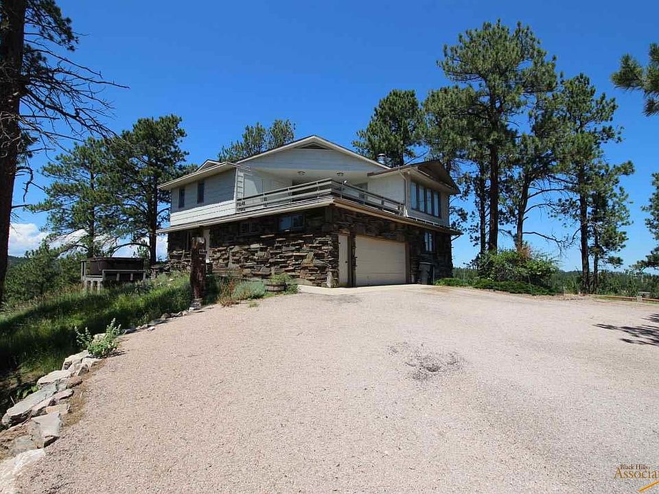 Views. From. Every. Room. This 2-story home on 6 acres makes you feel like you are in the Black Hills with 360-degree views of the Hills and Rapid City. Enjoy watching wildlife and the city lights at night. 5 minutes to town! You’ll be blown away when you walk upstairs into the living room with huge windows on 3 sides and amazing circular stone gas fireplace in the center. It’s open to the 14x14’ dining room. The kitchen includes beautiful cabinets with new granite countertops, new backsplash, and shiny new stainless-steel LG appliances. Nice! Gaze at the trees as you are cleaning up the dishes. The 3 bedrooms, laundry room, and 2nd bathroom are on the lower level. Off the master bedroom is the new master bath remodeled earlier this year to include a 36x60 tub with marbleize surround, high end glass shower door, and new vinyl flooring. Plus, a cool barn door on the bedroom! There is over 900 square feet of deck…choose your view from the 23x20 front deck or the 27x14 + 12x8 back deck – there’s even a natural gas line for your BBQ. Hot tub stays! Don’t forget about the 24x24 detached garage built in 2005. Circle driveway with room to get around and parking options to park your RV, trailers, and boats. Oh yeah. And it’s Air Conditioned! Gotta see. Call Tristan with Mindful Living Realty, 605-593-9367.