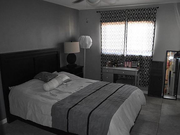 This amazing home has been upgraded throughout. The current family has taken pride in their ownership. The finished Great Room opens to the kitchen that has been completely remodeled with Quartz counter and stainless steel appliances. A center island has been added and all of the flooring has been upgraded to beautiful neutral tile. All of the doors have been replaced in home. Both Bathrooms have been redone and the shower has been tiled and a new vanity has been added. There are new fans throughout the home and the home as been painted. Beautiful French Doors lead out to a large yard with a good sized shed. There is slab parking for 3 vehicles on the property. The owners have also had a precautionary treatment done for termites and there is over 2 years left on the warranty. A Great Value