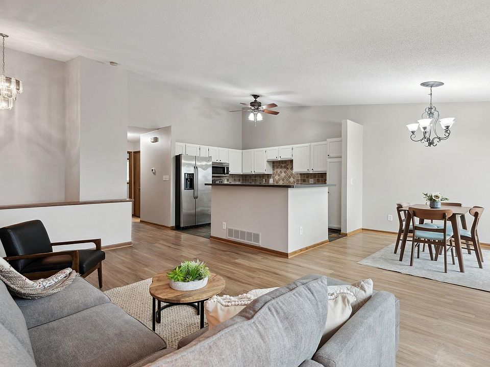 Just renovated and ready to move-in! Brand new luxury vinyl plank flooring spans the main level with brand new paint throughout. Kitchen has been refreshed with newly painted white cabinetry. Make sure to check out huge deck with stairs overlooking beautiful pond views. Lower level has wood burning fireplace and walk-out to green space. Close proximity to 62 or Hwy 7 to make getting anywhere a breeze! Minnetonka Schools within walking distance to Clear Springs Elementary.