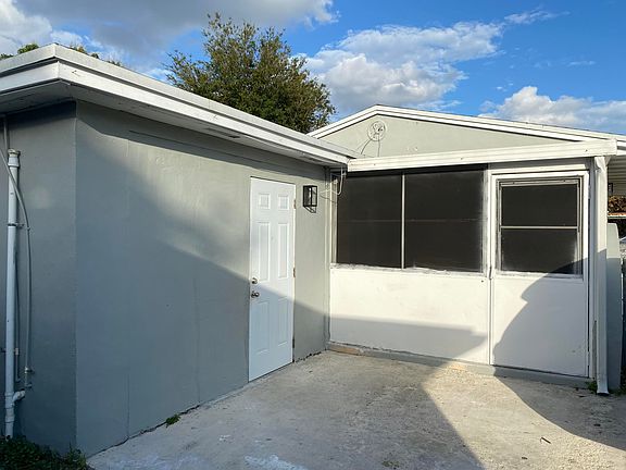 Virtually staged. Come see this beautiful remodeled home,1017 sq ft under air, 5 min from Turnpike entrance - yet peaceful and quiet - perfect for big families or for extra rental income !!! Main 2/1 house plus a 2 room + bathroom/closet attached master suite with kitchenette, which can also be a guest house, AirBNB, an office or 2 extra bedrooms for a big family. Roof and AC replaced in 2021. New flooring (2022). New kitchen with stainless steel appliances, modern stainless backsplash panels and oversized sink. Freshly painted. Updated bathrooms with designer tile and rain shower. Separate laundry room with an extra closet, tiled patio. Fenced front and back yard, 2 separate driveways and 2 sheds for storage/gardening. Back yard has private clusia hedges. Transferable termite warranty.