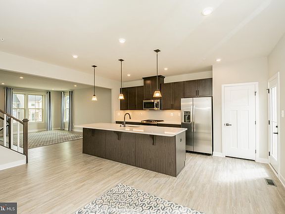 Welcome Home to this never lived in former NVR Ryan McPherson Model Home located in Harrington Terrace! End Unit 2 car garage townhouse with a partial stone front & side. 3 Bedrooms, 3 Full, 1 Half Baths. Open Floor plan with LVP on main level & oak stairs leading to all 3 levels. Too many to list but some model upgrades include gourmet oversized island kitchen with Sonoma cherry slate cabinets, Iced white quartz counters, hex gray tile wall backsplash, under counter lighting, upgraded S/S appliances with slide in gas range, recessed lighting in all rooms, and bronze fixtures. Dining area leading to an oversized composite deck. Master bedroom suite with walk-in closet and luxury bath with upgraded ceramic tile, vanity & top. Fully finished walkout lower level with family room, full bath, leading to finished garage with additional side door entrance. Move in, unpack, and enjoy all of the finishing touches and designer selections this home has to offer! Convenient to shopping, entertainment, and commuter routes.
