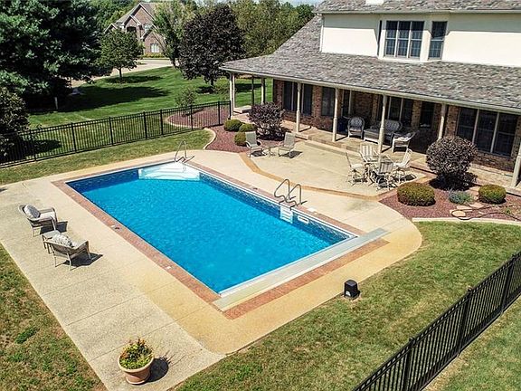 Beautiful stamped concrete wrap around porch invites you into this gorgeous home offering 2 story GR, formal DR, KT w/ solid surface counters and Bkfst room, 3 fireplaces, main level MBR suite w/ new HW floors,MBA w/sep tub& wlk-in tile shower.Upstairs w/ 3Br's,jack-n-jill bath,&new HW flrs.Fin. basement w/full KT,poss.5th BR,full bath & entertainment area.Beautiful pool w/ geothermal type heater & electric cover, gorgeous patio,wrought iron fence & bricked outbuilding all on an over 1 acre lot.