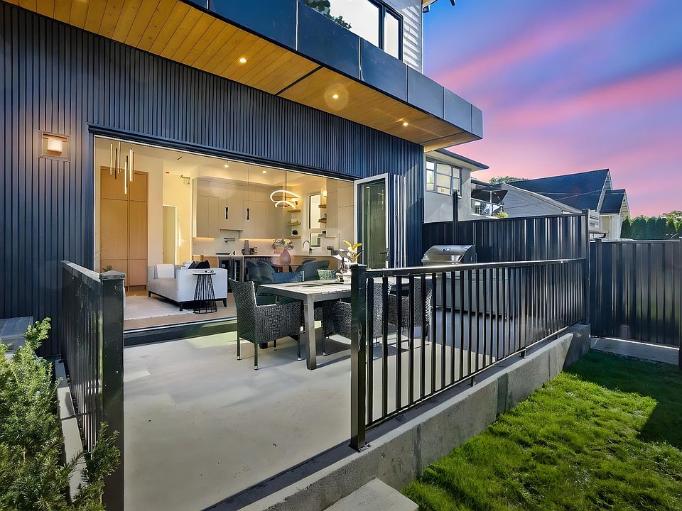 GORGEOUS/XTRA LARGE REAR/WEST FACING duplex located on a quiet street in the heart of Kerrisdale! SOARING 11'5" ceilings on the main floor which features high end engineered wood flooring/millwork/fireplace, bar area/wine fridge, STUNNING Kitchen w tons of storage, MEILE appliances plus custom LED lighting throughout. Upstairs you will find 10' ceilings, ample walk in closets, both bedrooms w Ensuites + another loft area upstairs with a 3rd bedroom/full bathroom. Additional features include a 500+sf crawlspace, security/alarm/cameras, manicured outdoor spaces, private single car garage (EV ready) plus custom black metal fencing. An EXCEPTIONAL location, walking distance from shopping, restaurants, recreation, top-notch schools and transportation!
