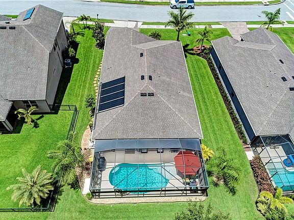 Spectacular Pool Home in Harrison Ranch now available! Welcome home to this immaculate 3 bedroom plus a den home that has an open floorplan, large spacious rooms and fabulous views of the pool and large scenic pond. No other home in Harrison Ranch compares to this one! The owner has upgraded just about everything you could upgrade on this beautiful home. The upgrades include: Elegant engineered hardwood floors throughout, beautiful tile backsplash in kitchen, shaker style cabinets with upgraded hardware and pull out storage racks, under cabinet lighting, 3 pendant lights over large island with granite tops, and upgraded stainless steel whirlpool appliances. The owner has also upgraded the bathrooms with custom tile work and high end glass shower doors. The large master closet has a California closet system for organization. The home also has custom lights and fans throughout the home and the owner didn't stop there. The exterior has a 3 car paver drive way that has been recently sealed, an epoxy sealed and coated garage floor, attic access with built in attic and garage storage, a tank less constant hot water heater that keeps your water hot, custom landscaping, and a brand new exterior paint job done with 15 year paint. You can't live in Florida without enjoying the outdoors and this house has the perfect escape after a long hard day at work. Come home to this charming pool with screened lanai overlooking the pond. This large pool has a solar heater so you can swim just about year around. The owner has also installed privacy curtains around the pool and Florida Glass on the top part of the cage that prevents any water from coming on to the pool deck and allowed the owner to have a bigger pool. Its truly ingenious! This house is definitely the best house in Harrison Ranch! Harrison Ranch is located off of U.S. 301 and is close to shopping, brand new schools, 2 golf courses, major interchanges for easy commuting. The master planned community also has heated Jr. Olympic size pool, Clubhouse with media room, library, gaming room, fitness center and catering kitchen. The community also has miles of walking trails, lighted tennis courts, handicapped accessible playgrounds, a full time activities director and more. This home is a must see! Hurry on this one!!!