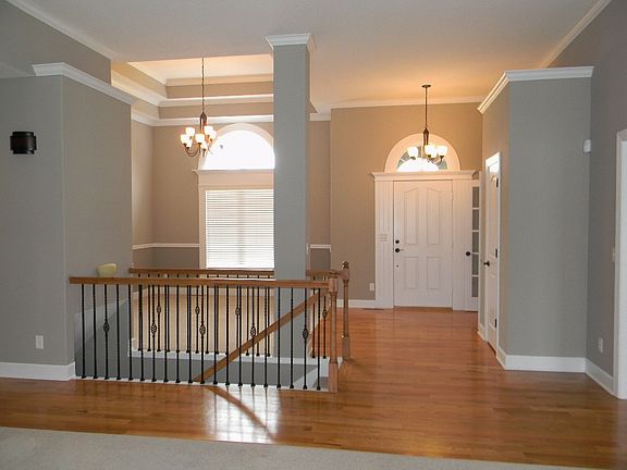 Exceptional quality in this lovely brick-front ranch. Energy efficient dual-fuel furnace that use electricity & gas. CWP cabinetry & Andersen windows.Oak entry w/ arched window above front door is open to living room & formal dining room w/ crown molding, large arched window & 13 ‘ coffered ceiling w/ dramatic chandelier. Spacious living room is appointed w/ 11’ ceilings, see-thru gas-log fireplace & crown moulding. Kitchen features oak floor, quartz counters, CWP birch cabinetry, under-cabinetry lighting, built-in pantry, hearth area, eating area w/ access to composite deck. Main level MBR is appointed w/ a coffered ceiling, & spacious master bath w/ double sinks, jetted tub, walk-in shower & walk-in closet. Full view-out lower level is complete w/ family/rec area, bedroom, full bath & plenty of unfinished space for storage. 3-car garage w/ 10’ 3rd bay w/ 9’ door & rebuilt-in shelving. HOA dues cover use /maintenance of the poolpark shelter, street snow removal & more!