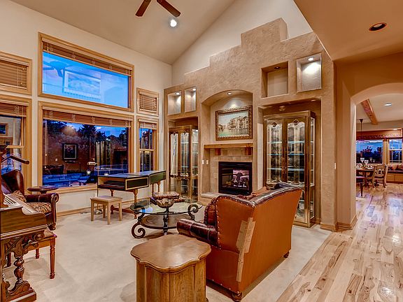 Elegant home located on a cul-de-sac, breathtaking views, and beautifully maintained natural landscape. Grand entry & staircase flow into an open floor plan combining formal & informal living rooms that share a double-sided fireplace & both have beautiful custom built ins. Gourmet kitchen features stainless steal appliances, double ovens, granite countertops, and island. A beautiful butlers' pantry, adjacent to the kitchen leads to the large dining room. Spacious & open Main floor master suite w/luxurious 5 piece bath & custom walk in closet. Study w/French doors and built-ins. Upstairs has three private guest rooms, all with en suite baths. New deck with new built in hot tub, flagstone patio, outdoor speakers, and gas fireplace allows for a great outdoor living space to enjoy beautiful Mount Evans views. Wooded path leads to the Golf Course & New Interior Paint throughout.