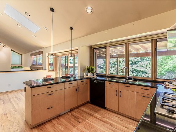 Situated on a quiet cul-de-sac in the Arapahoe Lake community, this open & vaulted floor plan has room for everyone. Less than 1 block walk to High Sierra elementary school in the Cherry Creek school district, the large lot is beautifully landscaped and has a large 2 tier deck, balcony, and another private patio to enjoy the outdoor beauty. All of the exterior concrete flatwork has been redone including the driveway and sidewalk to the front door. Upon entering through the front door you notice the tall vaulted ceilings which pretty much extend through the whole house. The contemporary floor plan features an updated kitchen with a wall of windows that overlooks the lush backyard from anywhere in the kitchen or for that matter anywhere in the dining & family room too. The kitchen has slab granite countertops, sleek black appliances including double wall ovens, a 5 burner gas cooktop, microwave, dishwasher, and refrigerator. There are real hardwood floors on the main floor and upstairs in all of the bedrooms. The eating space has 3 panels of glass including a sliding door that opens to the deck. There is a sliding glass door off of the dining room that opens to the upper section of the deck and there is another sliding glass door from the family room to the lower deck. There are additional sliding glass doors from the master bedroom to the balcony, the office to the deck, and 1 from the lower bedroom to the private patio. The laundry is on the lower level and the washer and dryer are included. The basement features a dance practice floor complete with mirror. This a great home in such a premier location. Quick to the tech center, shopping, and I-25.