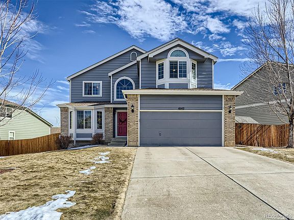 Large, immaculate home in prime location featuring tons of natural light, vaulted ceilings, open floor plan, sprawling back yard, finished basement, new paint inside and out, and new carpet. Large eat-in kitchen with breakfast bar, stainless steel appliances, granite counters, island, and endless cabinets. Enjoy working from home in the main floor private office. Cozy up by the fireplace featuring temperature control and blower. Unwind in the master suite with no shared walls featuring vaulted ceilings and remodeled 5-piece bath with garden tub, frameless shower, and huge walk-in closet. Send kids or guests downstairs to the wide-open rec room wired for sound, guest bedroom and full bath, and plenty of storage. Stamped, stained, concrete back patio and shed. Close to schools, shopping, restaurants, and E470 access.