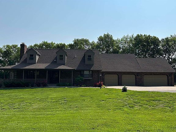 This magnificent Home in Southeast Shawnee County has an amazing private setting with an absolutely perfect wrap around front porch. This home has 3 bedroom, 2.5 bathroom home with an added bonus room in the basement that is the perfect opportunity to own a piece of paradise! Situated on three acres and within walking distance to Shawnee Heights High School & Middle School, this house was designed with family living in mind. The expansive 3117 sqft floor plan provides plenty of flexibility for your needs. A well-appointed kitchen opens up into a spacious living area complete with beautiful hardwood floors and cozy fireplace – making it ideal for entertaining friends and family. The home also features a four car garage giving you ample parking space for all your vehicles plus extra storage space! Outside, the property boasts an incredible outdoor entertaining area that will be sure to wow your guests. With its lush landscaping, mature trees and unique privacy fence - you'll never want to leave! This rare opportunity won't last long so don't miss out on making this house your dream home today!