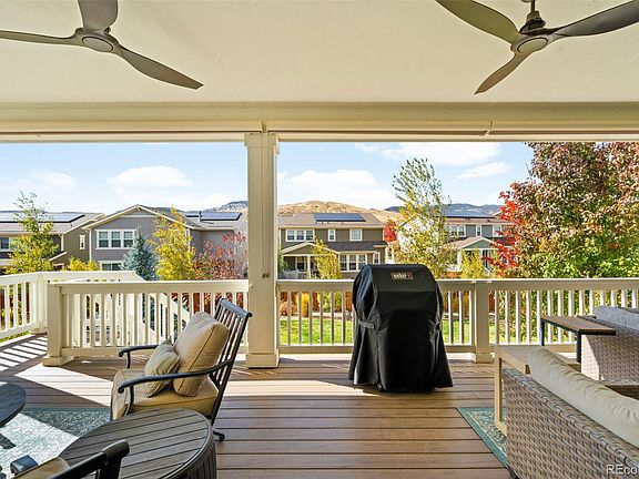 Meticulously maintained 4-bed/4-bath Golden home with mountain views, a large backyard and an oversized 3-car garage. Lightly lived in by its first and only owners, the house has been thoughtfully updated with tasteful upgrades and fresh exterior paint & a new roof in 2021. Tucked into the neighborhood away from the highway and on a street with no through-traffic, the lot is truly one of the best in Table Rock Ridge. This home’s backyard is an outlier in the neighborhood, one of the larger lots that enjoys mountain views and two separate outdoor spaces, a covered upper deck and a large flagstone patio on the ground level. The main level floorplan is spacious and open with high ceilings throughout– the kitchen features a sizable granite island, a separate coffee bar & a walk-in pantry. The living room is centered around a gas fireplace and built-in bookshelves, offering plenty of space for indoor/outdoor entertaining with the expansive covered deck just off the living/dining space. The primary suite is nestled in back, separate and quiet, with a roomy walkthrough bathroom that connects to a walk-in closet and a large laundry room. A sunny office with French doors off the front hallway offers an ideal work-from-home setup. Upstairs, two bedrooms share a jack & jill bathroom, and a third bedroom has its own ensuite bath, ideal for guests who appreciate a little privacy. The basement has endless potential with over 2,000 additional sq.ft. of unfinished space. Rough-in plumbing is already in place for a future bathroom, and the layout easily lends itself to having two additional bedrooms, a recreation room, and an enormous storage space. The home’s 3-car garage has ample space for gear storage and multiple vehicles. Ideally situated near the base of North Table Mountain, just minutes from Downtown Golden, 15 miles from Boulder, and walkable to parks & Golden’s expansive trail system– Welcome home!