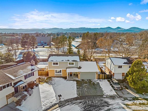 Nicely updated, move-in ready home at the end of a quiet cul-de-sac in Kipling Villas! This lovely 4 bedroom, 3 bath home boasts a traditional layout, covered back patio and large, flat backyard with mountain views. Beautiful wood-feel vinyl plank flooring flows throughout the main level, and a cozy wood-burning fireplace makes this house feel like home. All 4 bedrooms are upstairs and generously sized. The large, unfinished basement awaits your creativity. Many upgrades including new main electric panel, electric vehicle charging station, new central A/C and new dishwasher. Backs to greenbelt and the Lilley Gulch Recreation Center and Park. Blocks away from retail centers and Southwest Plaza Mall. Top-rated Jefferson County Schools and no HOA (voluntary) make this a prime neighborhood to call home!