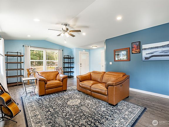 Tucked away on a quiet cul-de-sac, this 1,600 sq ft single-level home offers comfort and style. Open-concept with high ceilings, cozy gas fireplace, and large windows. This home has beautiful hard-surface flooring and a contemporary kitchen featuring granite countertops, white cabinetry, and stainless-steel appliances. The primary suite includes a walk-in closet & private full bath. Two additional bedrooms, and a well-appointed guest bath with quartz vanity and large tub/shower, provide plenty of space for guests, or office. Enjoy a fully fenced backyard with deck, fruit trees, and space for gardening or gatherings. Large two-car garage. No HOA so bring your RV or boat, just minutes away from Silver Lake. It's all you want and more!