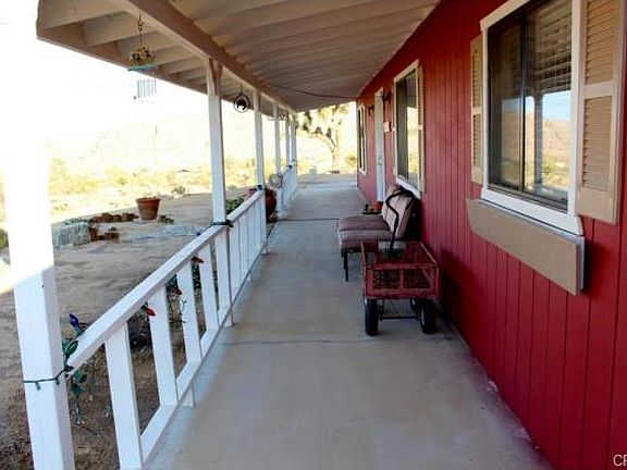 Incredible mountain view residence located just minutes from the park entrance! Sited on 1.14 acres, this ranch stylehome provides 2 bedrooms 2 baths in main residence, and offers a fully equipped attached guest casitas with privateentrance. Warm wood laminate floors are a welcome addition to the spacious living area, and compliment the finewood cabinetry in kitchen. Enjoy the wood stove during the chilly months, a great addition to the central heat and Air.Guest casitas provides a spacious living area, a dining nook, full kitchen, and large master bedroom with walk-incloset and private bath. Casitas offers the convenience and warmth of a pellet stove. Enjoy a shaded view of themountains from the rear covered patio. Rear of home offers a fenced yard and small workshop. Property is well suitedfor RV parking, and offers a 2 car side loading garage. Don't miss this small price tag for this well located primeproperty near Joshua Tree National Park!