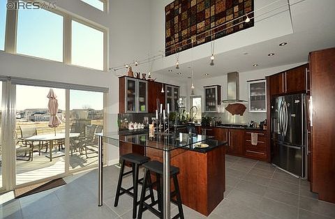 Stunning modern style 4 bed/5 bath custom home across from Boyd Lake. Kitchen has stainless appliances. Main floor master has 5 piece master bath, huge shower w/dual shower heads and soaking tub. Brazilian cherrywood floors & large tiles on main level. Upstairs bedrooms all have private attached baths. Finished walkout bsmt w/media area, wet bar, 4th bed/bath and workout room, backs to open space. Bring your boat, 4 car garage w/10' door & close to private neighborhood boat dock on Boyd Lake
