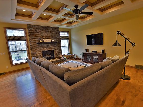 Find the perfect balance of country living & style in this custom ranch boasting quality in every corner! Unwind in the coffered ceiling living room or prepare meals in your exquisite Thermador Chef's kitchen. The master bath boasts a 6' whirlpool tub, heated tile floors & dual sinks. Stay comfortable with geothermal and forced air systems or enjoy the great outdoors on your covered & sundrenched patios. Extras include security system, central vac, closet organizers, soft close cabinets & drawers, a generator, & garage to basement access to your light filled unfinished exposed basement.