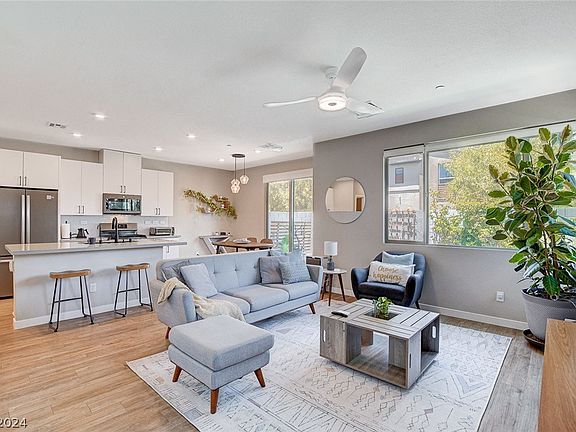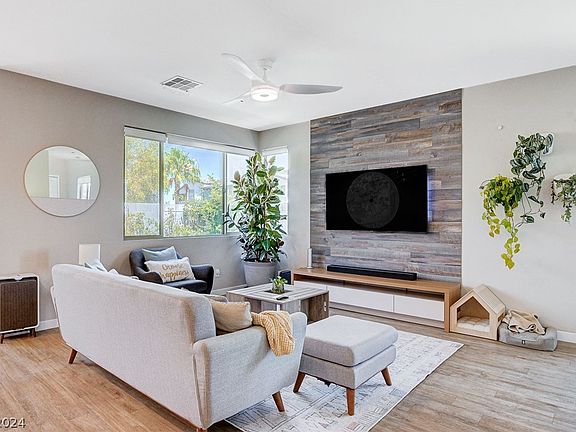 This is the one you have been patiently waiting for! The interior work and upgrades to this home make it feel like a model home. Featuring two stories, three bedrooms, and two and a half bathrooms, this spacious residence offers an expansive 1781 sq/ft of living area. The two-car garage provides ample space for vehicles and storage. Located in the highly desirable Southwest area of Las Vegas, its original owners have perfectly maintained and cared for this home. It boasts numerous upgrades, including LVP flooring, modern railings, custom roller shades, solar power & a Tesla charger, and a cozy backyard. Situated at the end of a side street and adjacent to the gated community pool, this property offers both privacy and convenience. This move-in-ready opportunity won't last long!