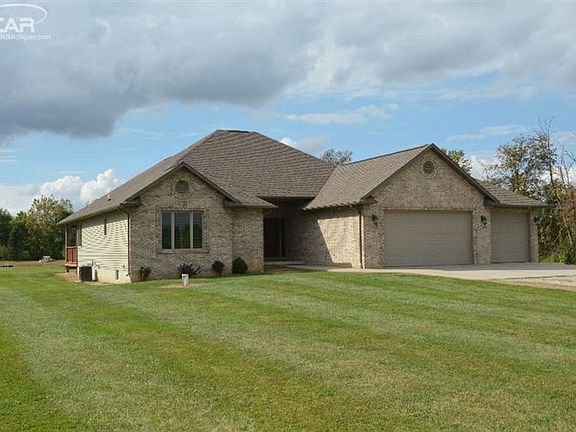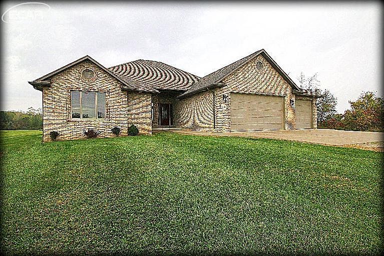 Once in a blue moon a home this sensational becomes available.This 3 bedroom split brick ranch is positioned on a stunning 15.8 acre piece of heaven with a 50 X 80 Pole Barn, large pond & sandy beach. As you approach down the driveway you recognize the brick front & generous 3 car garage.After being received into the foyer you step into the spacious great room with vaulted ceilings,gas fireplace & stunning views of the pond.Master bedroom suite has a secluded spa-like bathroom with his & her walk in closets. A full partially improved basement awaits your finishing touches. The Outbuilding boasts a 14 ft. overhead door, car lift, heated office area & a total of 4,000 sqft of storage for all of your toys. Call today for your appointment.
