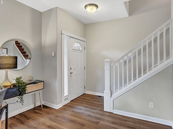 Lovely renovated home in quiet, off-street "tiny neighborhood" setting with park view! Extra-high ceilings make it live larger than its sqft. Updated in 2022: Kitchen - quartz counters, under-cabinet lighting, deep double sinks, SS gas range (2020), separate pantry, & glass-front china cabinets. Also 2022: main level luxury vinyl. 2023: New carpets & interior paint just done for a "New Home" appeal! Flexible layout on main with large kitchen & dining area plus room for a home office, playroom, or familyroom. Laundry room with large-capacity washer/dryer (included). Upstairs includes spacious primary bedroom with WI closet & en-suite bathroom; two additional bedrooms, all large enough for queen beds, flex space or home office. Private fenced sideyard & patio with large shed. Super location mere steps to park/playground & bus line. Blocks to schools, shops, restaurants. Biker's Paradise score = 93!! Absolutely move-in ready, waiting for your relaxed Summer enjoyment! [Home Energy Score = 6. HES Report at https://rpt.greenbuildingregistry.com/hes/OR10185658]